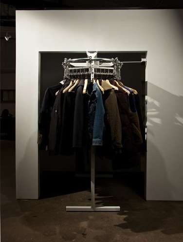 DC: One of the things that I secretly wanted to do was to raise consciousness of how important every individual is, in every aspect of society. So I feel like because I am absorbing their things, and making them art, part of my art, then they realize, “I could be art too. And the decisions I take in my life are important too.“ The conveyer was the hardest thing to get for the piece, and I got it because I thought of it as a central part of the piece–because I wanted the coats to be rotating in an aimless absurd circle. Not doing anything, just going around. That comes from my interest in existentialism, and really all topics and things. I get really inspired by movies like “Brazil”, things that mix philosophical questions with social and economic critiques. I feel like movies are a huge part of how I think. That’s why I’m so obsessive. I’m so obsessed with “Fight Club”, the movie. It is another of those movies that are between existential crisis and economic commentary.