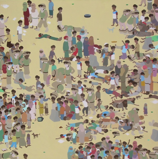 KAS: All these things are like different methods and different approaches to the same problem of you being interested in images of people. And what that says about the person being depicted. It’s sort of over these series, the methodology of how that is accomplished maybe become inconsequential, like, they were just different ways of depicting the same problem. And you are trying to pick a specific methodology for the group you are depicting. Like I think your choice of imagery for the Iraq paintings is really interesting, because it really talks so much about mediation, and in relation to those people. These talk a lot about labor in our relationship to these people. But in essence, it’s imagery of specific people, no matter whether the actual technique is specific or not.