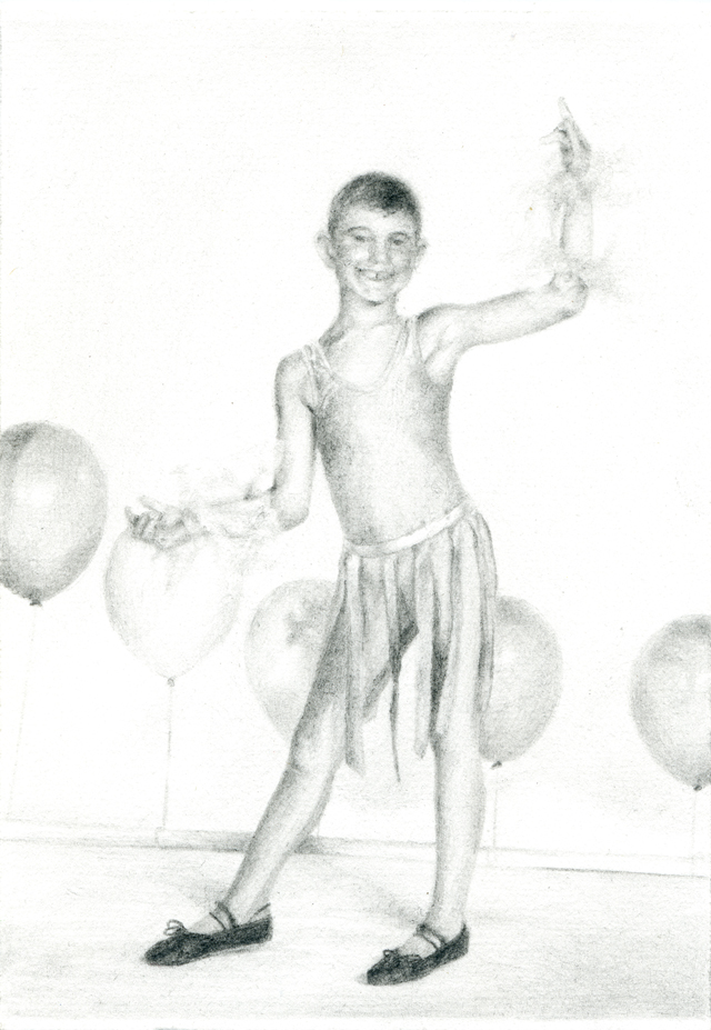 AE: Speaking of male-pattern baldness, I loved the sneak preview we got in your studio of your new series of self-portraits in which you have fused your own portrait with that of well-known aging male actors such as Nicholas Cage and Robert DeNiro. Am I allowed to talk about these? They remind me of an experiment I heard about on the “Who Am I” episode of RadioLab (one of my favorite podcasts), that explores how we recognize our own self. Using morph software, they would create a image that combines a photo of the test subject with a photo of Bill Clinton. Normally, the test subject would easily recognize themselves in the photo, rather than Bill Clinton. But most other people looking at the same photo, would first see Bill Clinton. When they did an experiment and anesthetized the right side of the test subject’s brain, then the person would then first recognize Bill Clinton rather than their own self! This revealed how important the right side of the brain is to self-recognition. Anyways, I guess where I’m going with this is, I’m curious about how difficult it may have been for you to really “see” each of the actor’s faces in these drawings, alongside your own. How could you tell when the combination really “worked”? It’s funny, in some of them I definitely see more Cobi, in others, I see more Robert DeNiro, or whoever. But maybe that has more to do with my own ability (or inability) to recognize and identify actors.