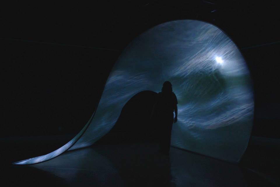 Georgie Friedman, Dark Swell, two channel video installation with audio, HD video, fabric, stainless steel, 2010.