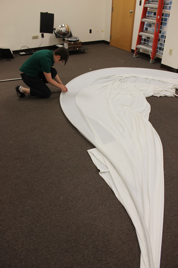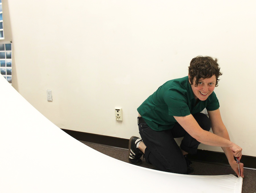I visited Georgie in her studio in late summer, just as she was preparing to ship her piece “Dark Swell” off to an exhibition in Kentucky. After a great show-and-tell of new and recent work, viewing some projection tests on scale models, and having the opportunity to help Georgie take apart the structure for “Dark Swell” (during which I realized the incredible precision required to install the piece), we followed up with the interview below.