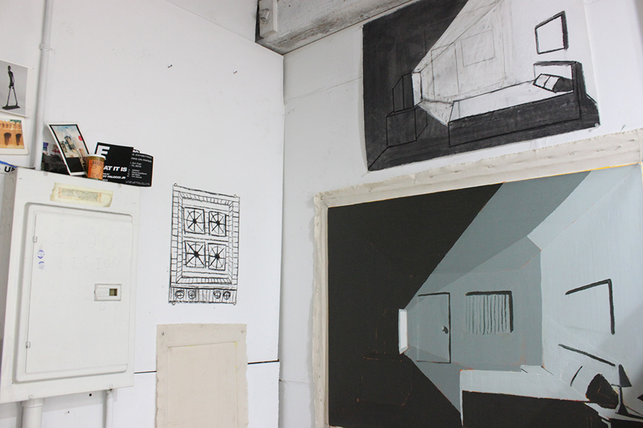 AP: I like to do full days in the studio, 9-5 or 8-4, depends on any other obligations, and often I like to stay later. Any time I have where there’s nothing for me to do, I go there or I’m writing, studying or drawing somewhere else. I am always planning and setting myself up for what is going to happen next. I have at least six things going on at once in different stages of completion. So that way if something goes wrong, or I have a question or whatever, I can move on and do something else and come back to it later. It is a good way for me to keep busy if I am having a problem. There will be a day where I am building stretchers and stretching and priming canvases and that’s it. That’s usually a two to three day job, with about four large-scale surfaces and countless small ones. I make sure to have at least three small canvases ready to go in case I need to address something in another painting that I don’t understand yet, whether it’s how to paint the light, a color decision or some drawing issue. If I have some deadline to meet I’ll be in the studio more than usual, even if I am not working I just like to sit around in there and think about what’s happening.