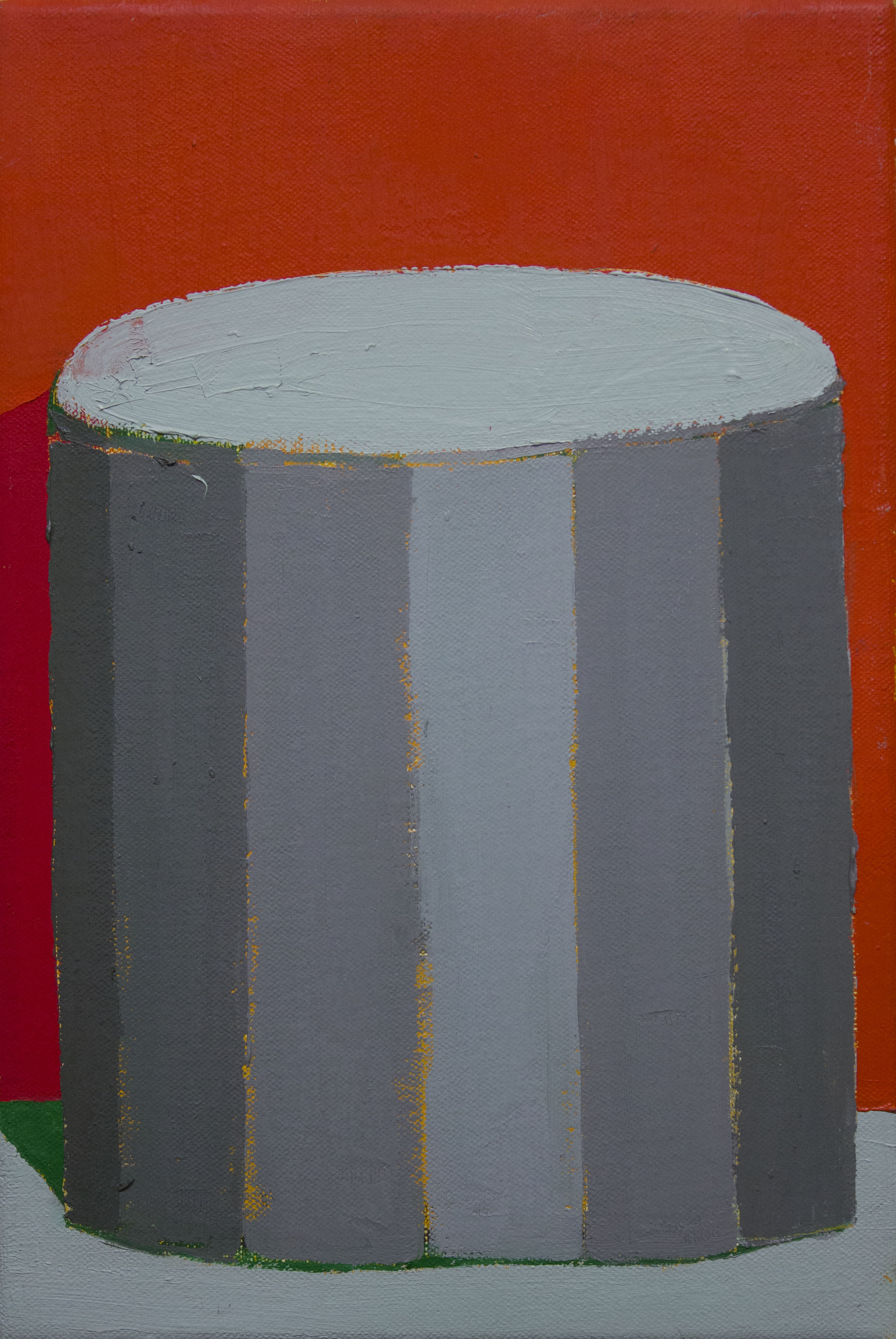 I think about the strangeness in things; like how alien something ordinary can feel if I stop to look at how many sides it has or what happens if I start thinking about it outside of its functional use, as just a form. I play with those ideas in the scale of some of the paintings. Sometimes it takes a serious jump in scale to talk about them the way that I want to, to make them unfamiliar. I have to look at a lot of different things before I pick something out. Things have to have a certain quality to work for me. Other times things find me and it is real obvious. I take notes of ideas I get while out and bring them back to the studio and sift through what I can make out of my handwriting and tiny drawings.