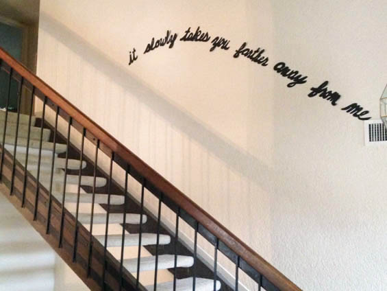 KB: These pieces are much more intuitive, spontaneous and personal for me. The first site specific pieces I did were in a residency studio at Kimmel Harding Nelson Center. I was there for two weeks away from my family, and while it was awesome to focus on my work, the level at which I missed them and the isolation in the studio made me start to see the space I was in as a sort of found object, infused with so many fragments of poetry. When I came back home, this instinct followed me.