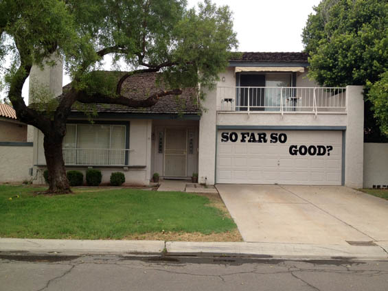 AE: In the studio, we talked about your move into some more site-specific work. Some of the locations you have been working with are actually within your home. Pieces like “So Far So Good?” and “It Slowly Takes You…” are interventions into your own “domestic” space. While we often see artists working with ideas of domesticity and home, it seems to be much more rare to see an artist working physically within their own domestic space. It’s almost like there is still something a little taboo about it, particularly for a female artist. I think it’s pretty courageous and interesting to actually work with and within these kinds of spaces. Can you talk about how these pieces evolved, and your thoughts about working within your domestic space?