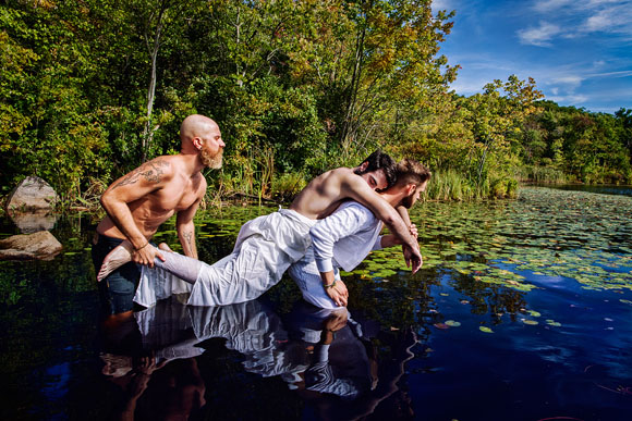 SMJ: This is always a tough question for me. These images are created by previously visiting the space. These spaces return to me while I’m usually brainstorming about ideas, thinking about the possible scenarios or interactions that I want to create. The most recent images that deal with the pond came to me after visiting Turtle Pond in the Stonybrook Reservation, and being enchanted by how amazing this space was. I wanted to do something with it, but I needed to figure out what I was supposed to do! While swimming in the pond one day, I just looked down at my hands and saw that the water was very tea stained, and it hit me. I wanted to do something about a body in the water, and the imagery just came to me and I pieced the puzzle pieces together.