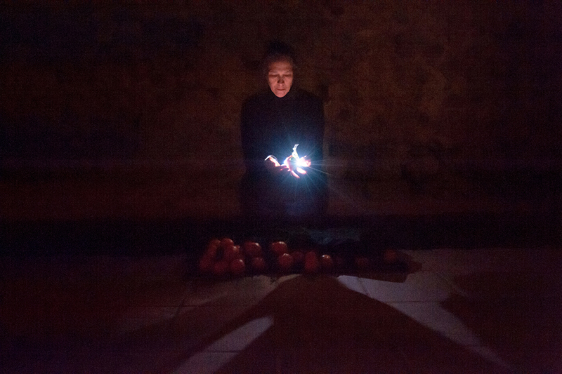 Marilyn Arsem, earth and oranges, Performance at Fem_12 International Festival of Performance (Girona, Spain), Photo by Ana Rita Rodrigues, 2012