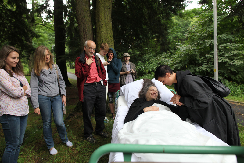 Marilyn Arsem, The Cure, Performance at the 3rd International Sokolowsko Festival of Ephemeral Art (Sokolowsko, Poland), Photo by Marcin Polak, 2013