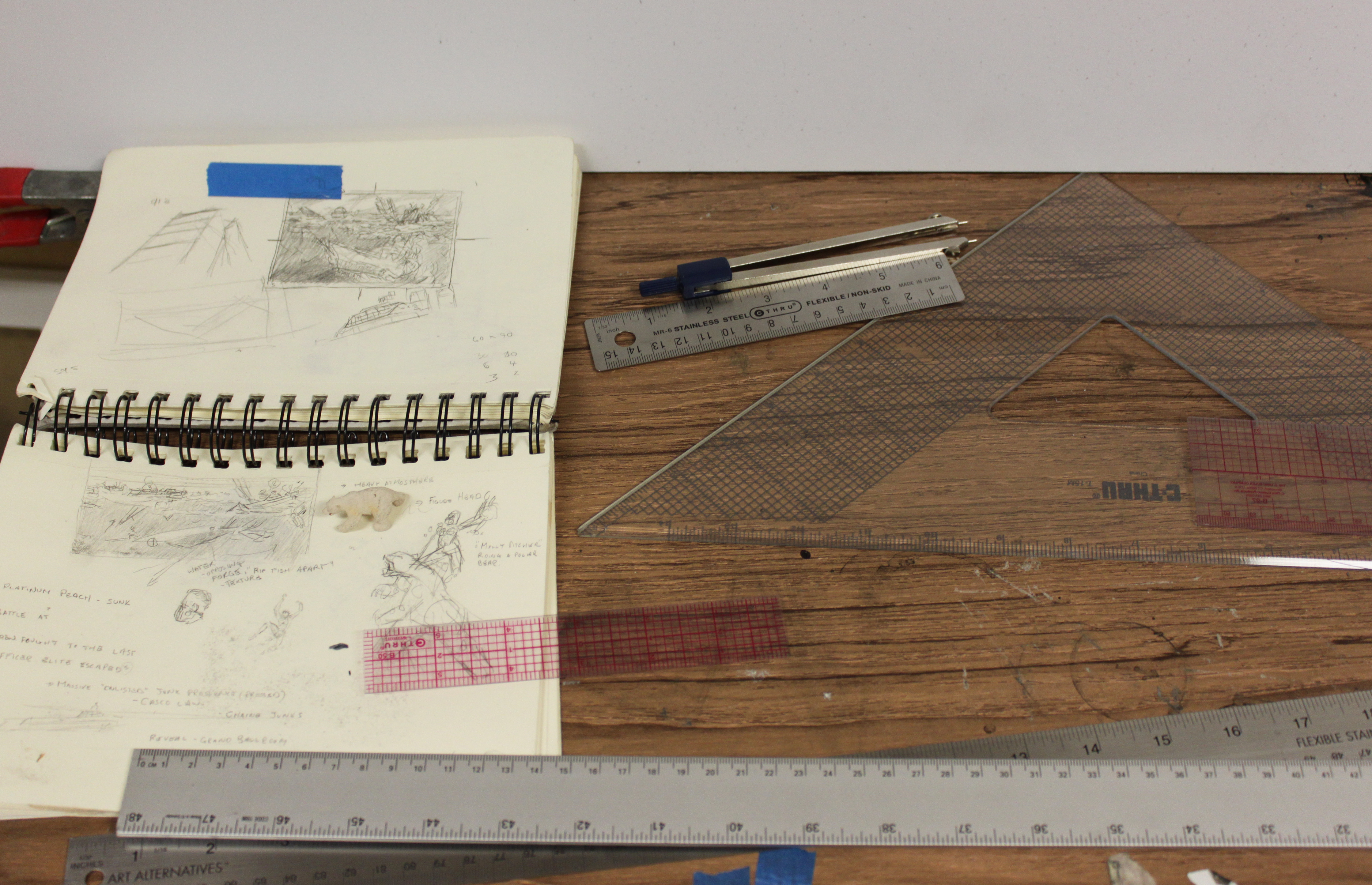 In terms of visual references, I’ll either build a model and/or work from a photoshop composite image.
