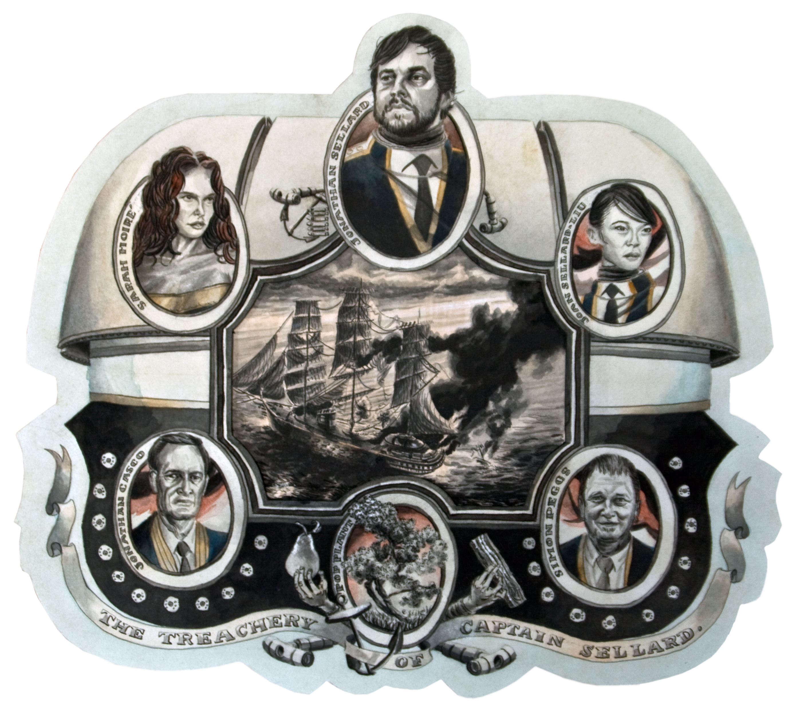 Eric Petitti, The Treachery of Captain Sellard, ink, watercolor, and graphite on paper, 15″ x 10″, 2011.