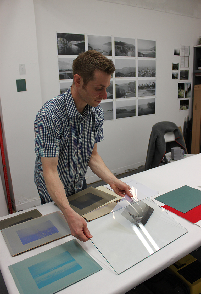 Scott Patrick Wiener, Installation view of exposure for I Want the One I Can’t Have, UV Light, Inkjet Transparency, Construction Paper, each image: 9″ x 12″, 2014 (BCA Mills Gallery).