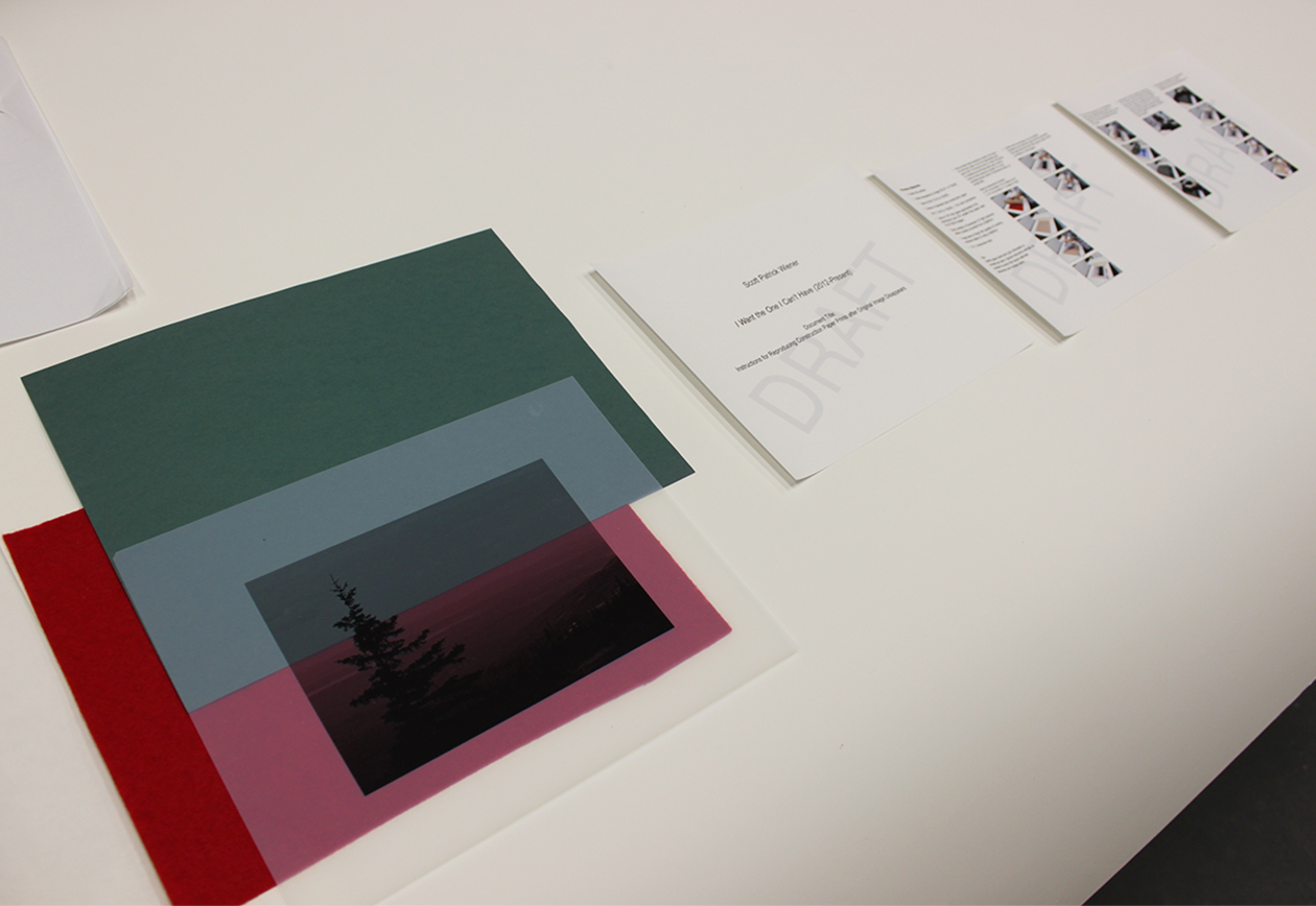 Inkjet transparency, construction paper, and reproduction instructions for Scott Patrick Wiener’s I Want the One I Can’t Have
