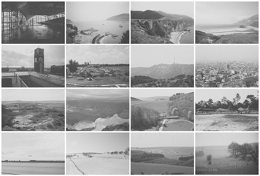 My Light Bulb Burns Gray is less about a psychological relationship between family members. The images in this work were selected for their normalcy to coexist in fields of gray, which I used to neutralize the nostalgia that tends to accompany the viewing of a family travel album. They also abide by standard rules of composition that determine the look of landscape images in postcards, calendars, etc. with the exception of a few military images of airplanes. (My father was a career US Air Force man.) These pictures are formally very similar to the landscapes in the grid, but are included as a way to address the militaristic and politically motivated dimensions of image-making. I see the travel image, made by the vacationer, as being concretely about personal conquest. By using the camera, and the resulting technological image, one is able to prove their existence in that place, therefore conquering that place, with the evidence of that gesture precisely located in ownership and presentation of the image from a particular viewpoint. This is about exerting power over place, subordinating it to a culturally trained and asserted view, not much different from when the British sent their painters to South Africa after its annexation to paint it like their countryside.